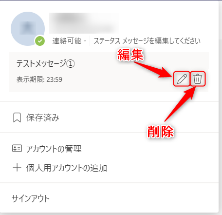 ステータスメッセージとは、自分の現在の状態をTeamsに表示する機能です。